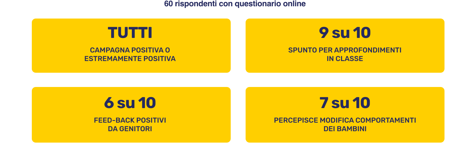Approccio di comunicazione, basato sull’edutainment e declinato a misura di ogni pubblico, utilizzo di strumenti smart, della tecnologia e di modalità collaborative e “assistite” da tutor e animatori, hanno stabilito una rete virtuosa di sperimentazione che ha dato i suoi frutti. E l’evidenza che cambiare in meglio le abitudini delle famiglie si può.