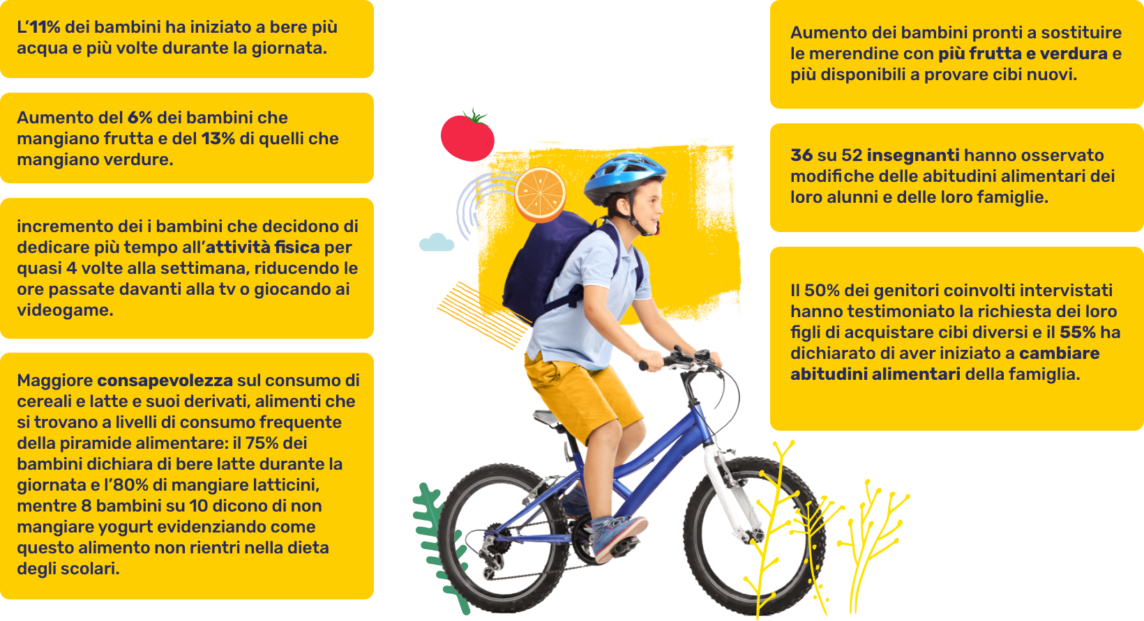 • un significativo incremento delle competenze dei bambini su cosa e quanto mangiare e sull’importanza dell’attività fisica, confermato dalle testimonianze degli insegnanti e delle famiglie partecipanti